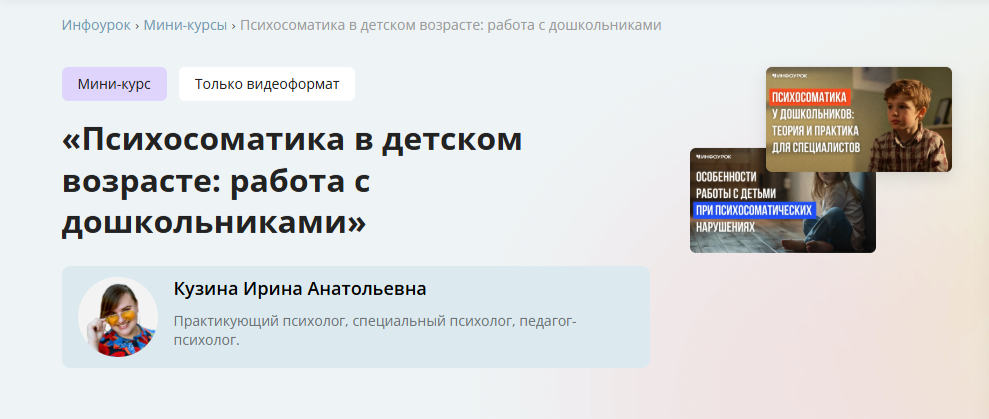 Курс посвящен изучению психосоматических расстройств у детей дошкольного возраста и эффективным методам работы с ними. Слушатели узнают о влиянии эмоций на физическое состояние ребенка, познакомятся с современными подходами и практическими техниками (КПТ, АСТ, игровая и арт-терапия), научатся помогать детям в регуляции эмоций и тела. Особое внимание уделяется стратегиям взаимодействия с семьей и педагогами для...