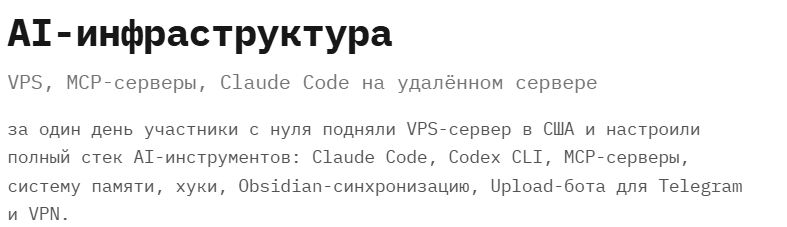 За один день участники с нуля подняли VPS-сервер в США и настроили полный стек AI-инструментов: