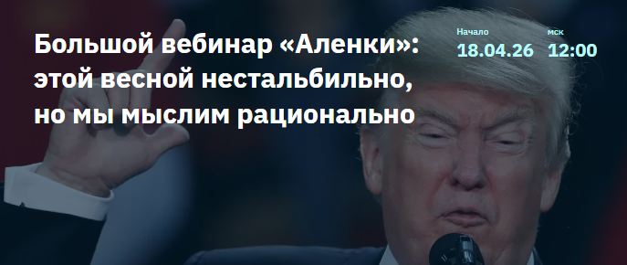 Приглашаем всех на вебинар по стратегии «Аленка Капитал». В мире нестабильно, российский фондовый рынок после оживления последних месяцев вновь впал в апатию, что как открывает большие возможности, так и напоминает нам о важности здравого смысла и фундаментального анализа. Обсудим актуальные идеи и необходимые рациональные решения.